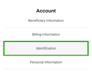 Click on the Profile tab on the left side of your dashboard, select Settings, and then Identification.