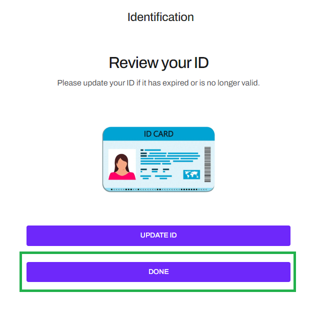 - The ID upload can also be accessed when purchasing an additional account and needs to update their ID.