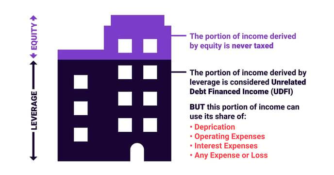 UDFI applies to rental income and capital gains income from a debt-financed property (a purchase loan, improvement loan, or a non-recourse loan).